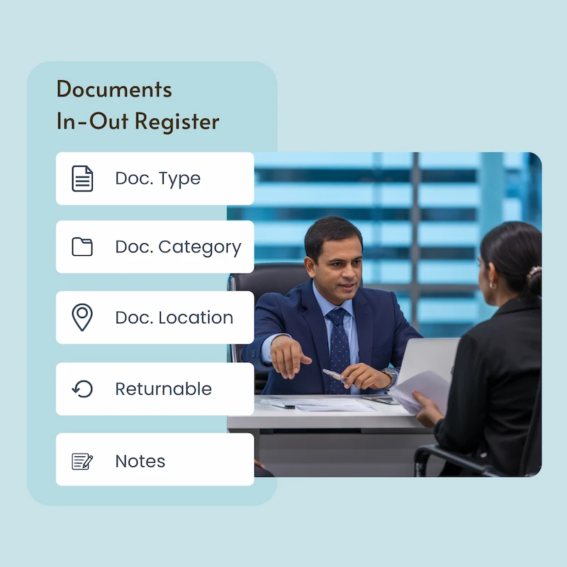 Track physical documents passing in and out of your office. Record returns, prevent misplacement, and maintain complete accountability.