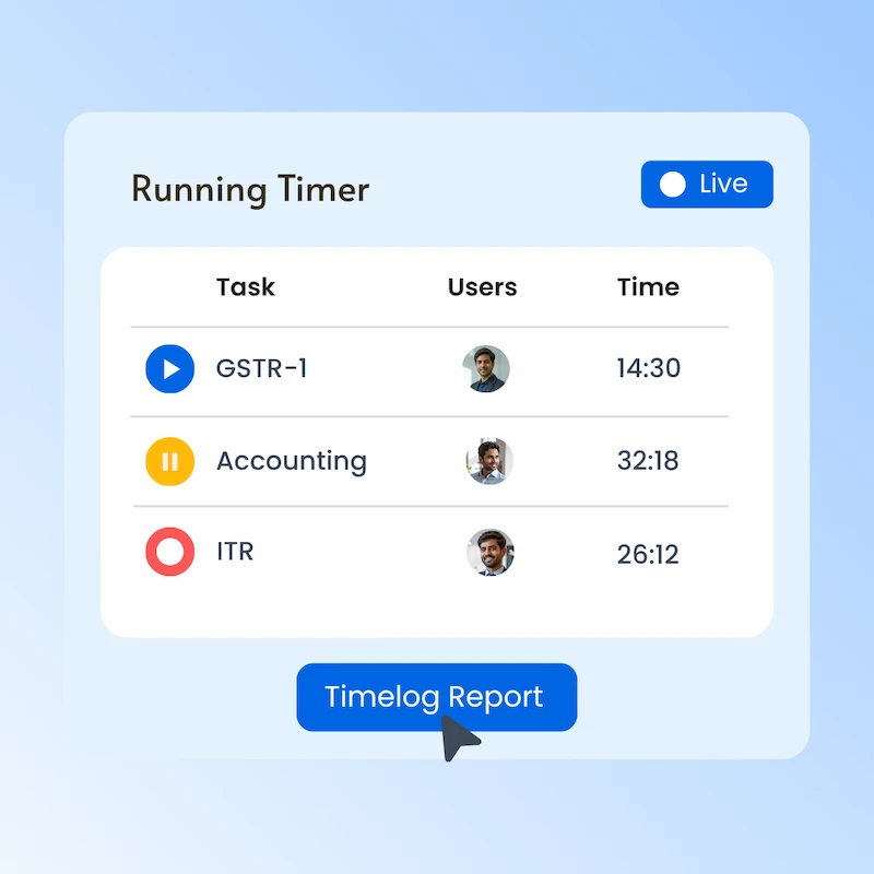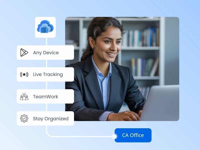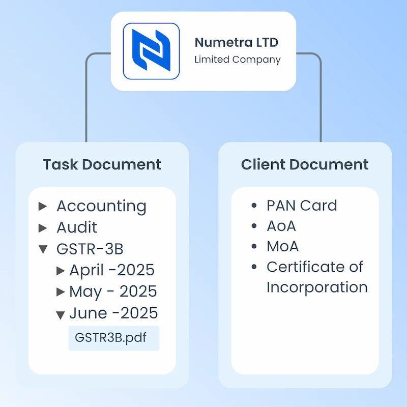 Store all client credentials securely in one place, like GST, ITR, MCA, and more. No more searching through spreadsheets or messages.